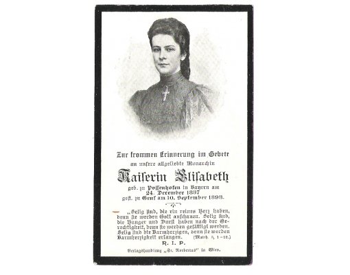 Portrét císařovny Sissi - lístek vydaný při úmrtí