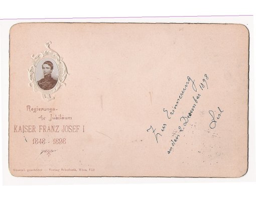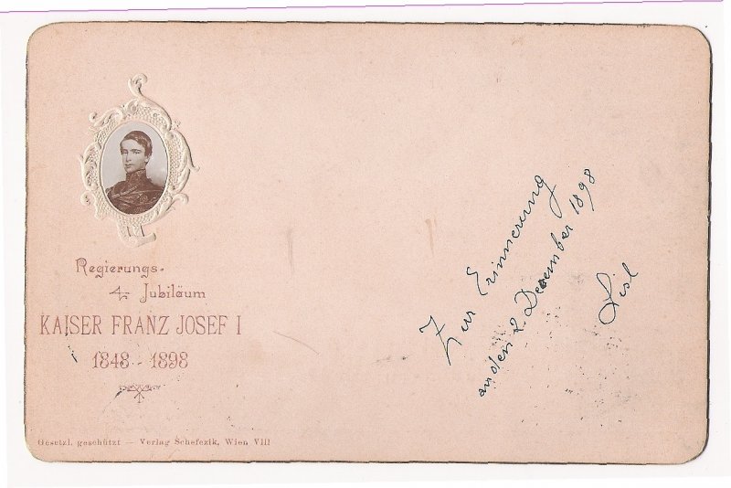 Portrét mladého císaře Franz Josefa I. v ozdobném rámování vydaný k 60. výročí jeho vlády
