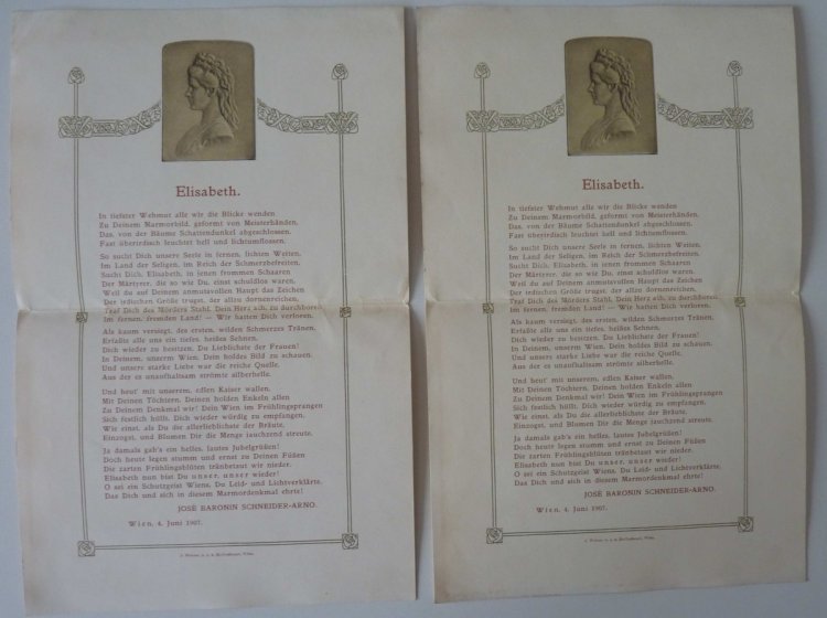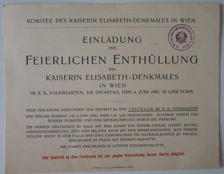 Pozvánka na otevření pomníku císařovny Elisabet od baronky Schneider Arno .....mimořádné