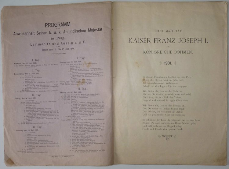 Program návštěvy císaře Františka Josefa v Čechách v roce 1901 - Praha , Litoměřice a Ústí nad Labem .... mimořádný dokument