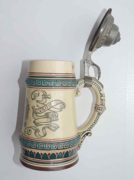 Půllitr a cínovým víken - patří do setu k třílitru v předchozím zobrazení - orli a Viribus Unitis / mimořádný exponát