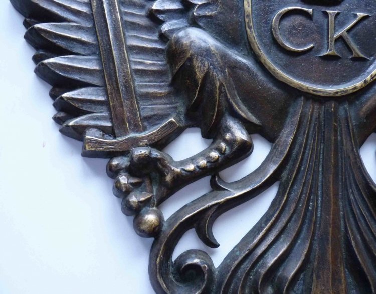 RAKOUSKO - UHERSKO / znak - orli . Česká varianta ve znaku C K .... císařské - královské / mimořádný exponát RRR , 26 kg - bronz , 76x62 cm .