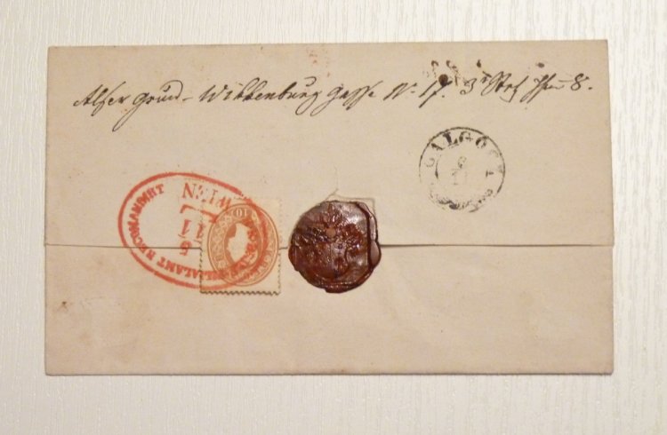 Rekomando dopis 2krát 10 Kr., červené razítko Wien