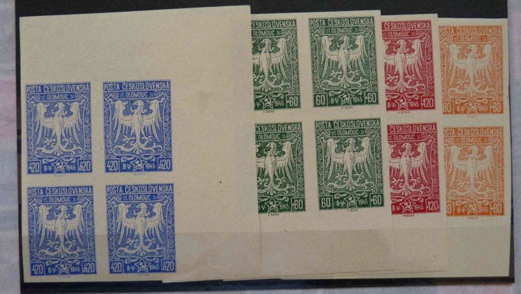 Tato sbírka revolučních přetisků je mimořádně obsáhlá s velikým množstvým atraktivních položek.Hned na prní straně celý arch ,,Olomouckého vydání ,, revolučních známek  s chybotiskem (je děrovaný ).Další mimořádností je dopis s kompletní sérií ,,Olomouckého vydání ,, revolučních známek a to i již se zníněným chybotiskem.