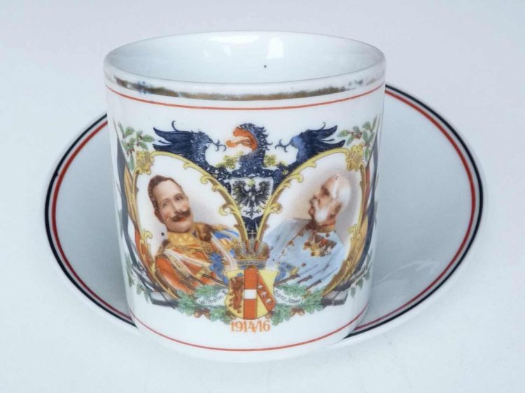Hrníček s podšálkem / portrét Františka Josefa a německého císaře Viléma II. , rok 1914/16