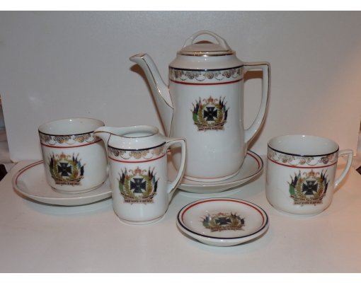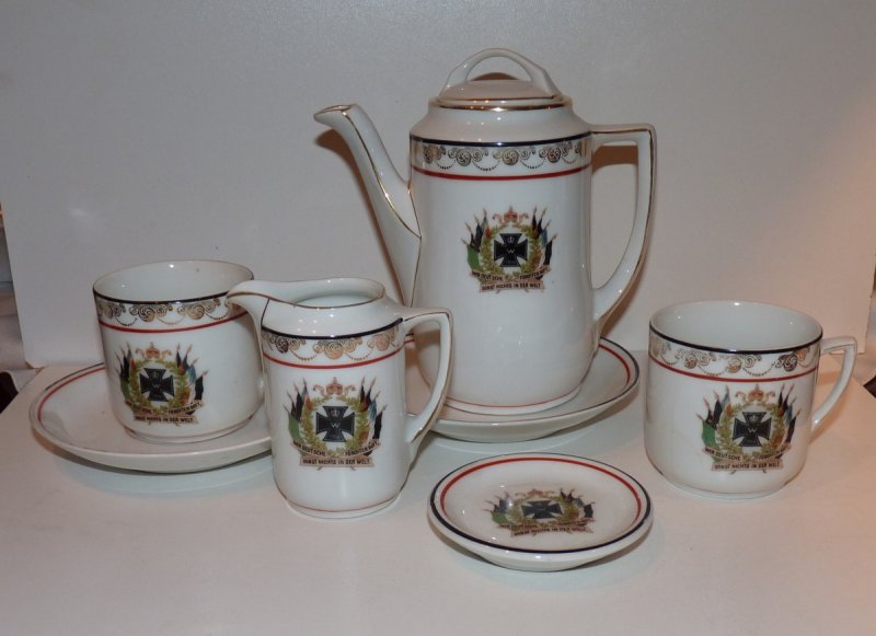 Sada hrnečků s konvicí a Wilhelmův kříž na předmětech