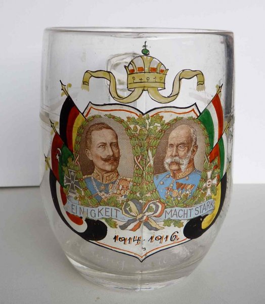 Skleněný půllitr - František Josef I. a Vilém II. , vitrínová zachovalost - originál