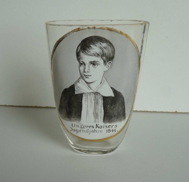 Unikátní oválná sklenička s portrétem mladého Františka Josefa - rok 1844 ( není mnoho takových )