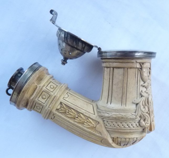 Fajfka zřejmě ze slonoviny , šlechtický erb , ručně vyřezávaná - zachovalé
