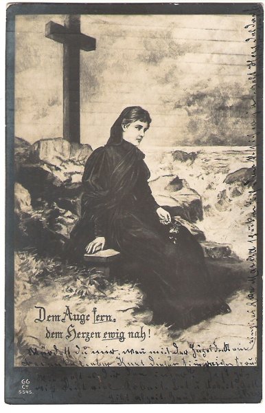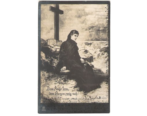 Smutečí pohlednice císařovny Alžběty s motivem kříže