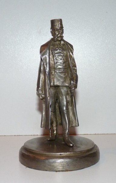 Soška stojícího Franz Josefa v dlouhém kabátě ... klasické vyobrazení mocnáře