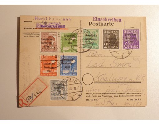 Německý korespondenční lístek s přetiskovou sérií - sovětská zóna