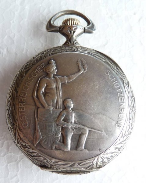 Rakouský střelecký spolek - mimořádné stříbrné kapesní hodinky( plně funkční ) od vídeňské hodinářské firmy Widmung / Alois Schwarz