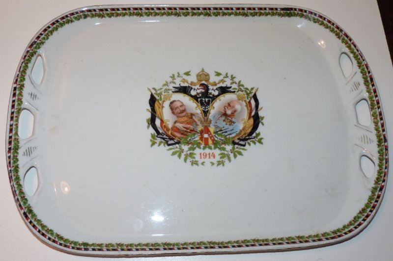 Tác (1914) s portrétem Franz Josefa I., Wilhelma II. a rostlinnými motivy