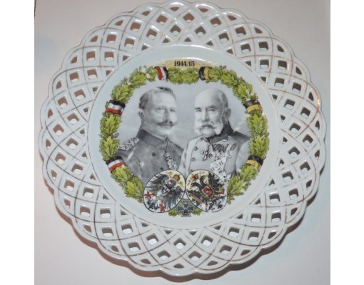Ozdobný talíř s portrétem spojeneckých císařů Franz Josefa I. a Wilhelma II.
