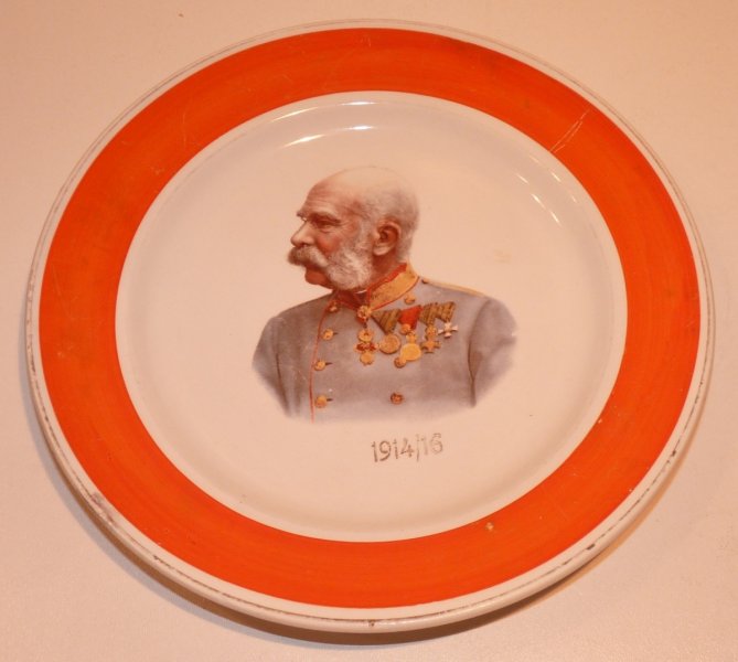 Talíř s podobiznou císaře Františka Josefa I. s červeným pruhem 1914 - 1916
