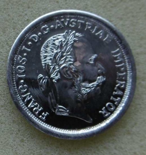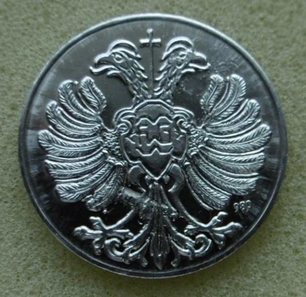 Novodobá ražba ze staré raznice , křížek mez hlavami orlů