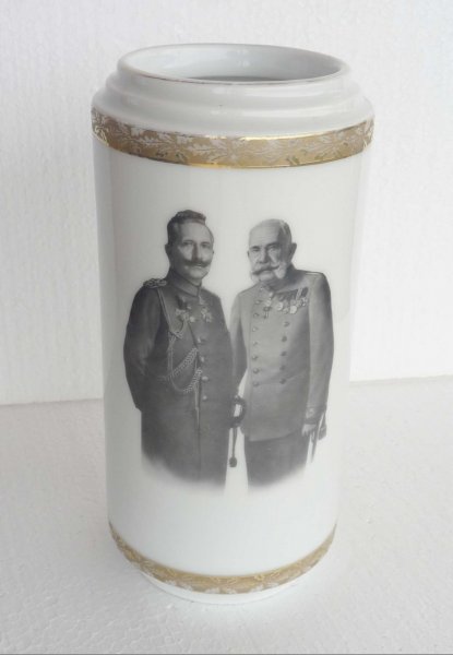 Váza na květiny , stojící císaři - František Josef a Wilhelm / mimořádně kvalitní tisk a zachovalost , PT Bavaria