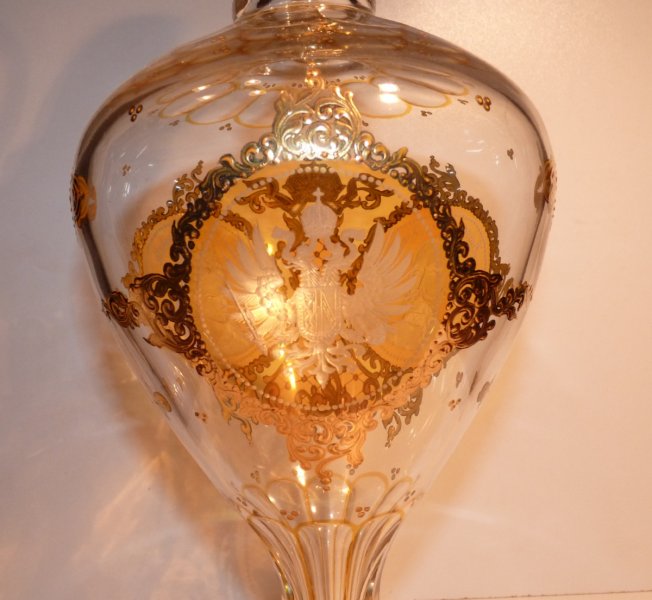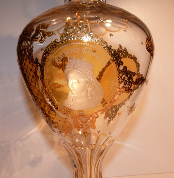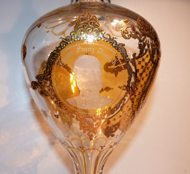 Veliká karafa s broušenými portréty Sissi a FJI.