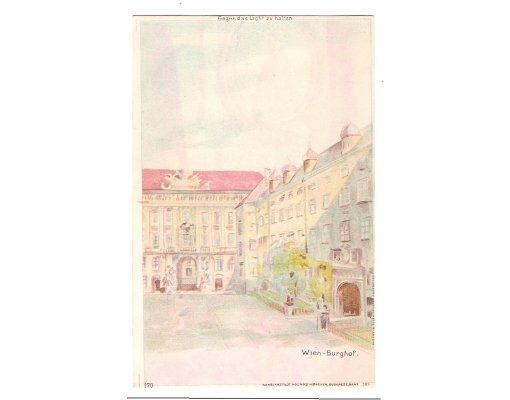 Malovaná kresba části Vídně- Burghof / proti světlu je vidět průsvit sedícího F.J.I.