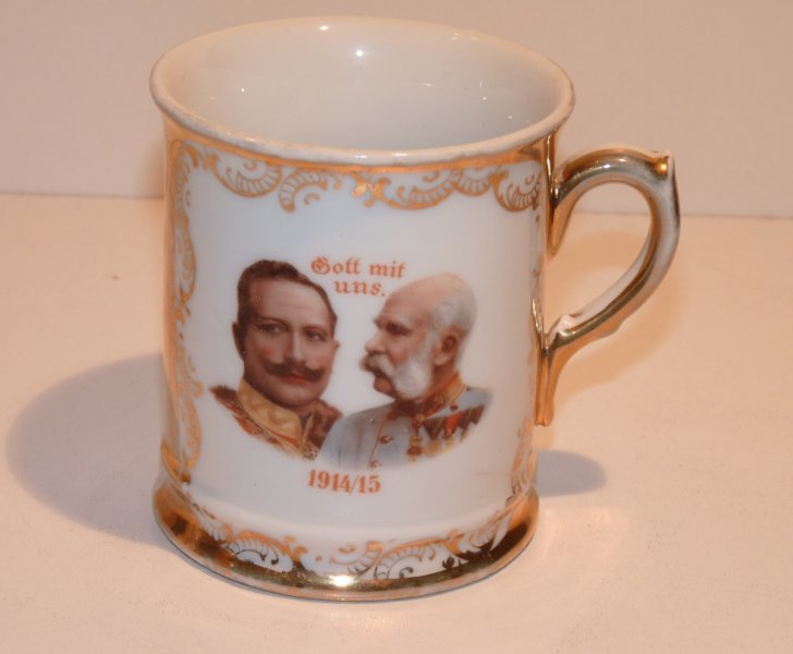 Vilém II. a František Josef I. na hrnečku s pozlacením