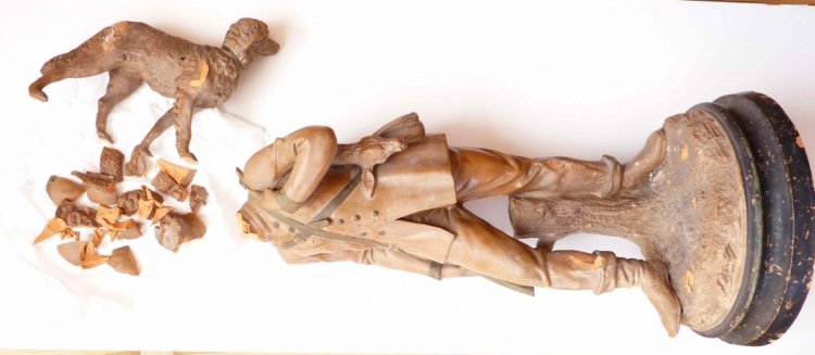 Wilhelm I. - socha císaře v mysliveckém / materiál - terrakotta (... a jak socha vypadala po dodání naší slavnou českou a německou poštou - DHL)