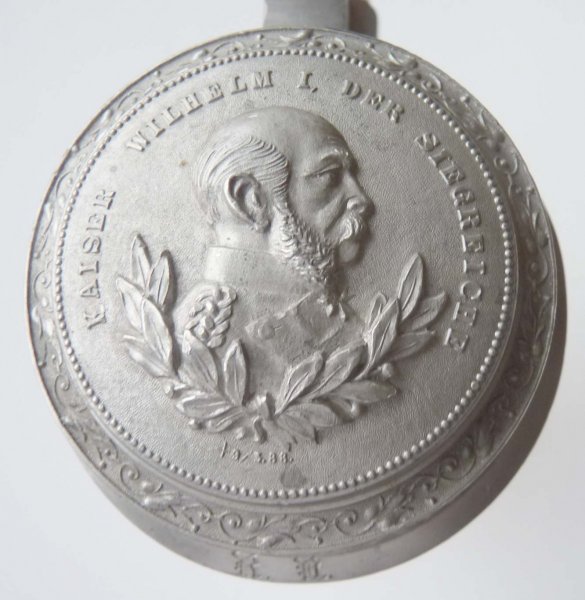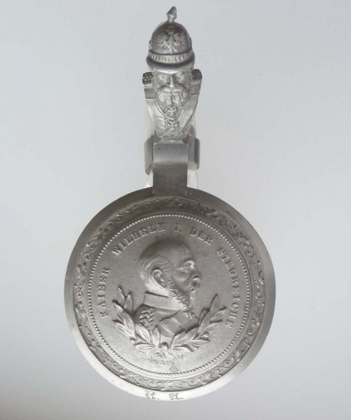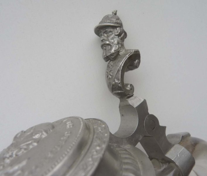 Skleněný půllitr a cínovým víkem a portrétem císaře