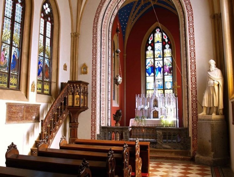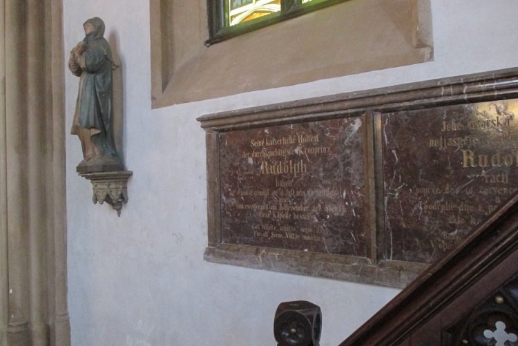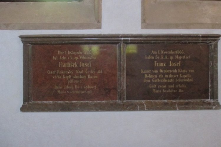 J.V. František Josef I., císař rakouský a král český dne 1. listopadu 1866 v této kapli svatou mši slyšel. Bůh ho žehnej, sv. Maria chraniž ho.