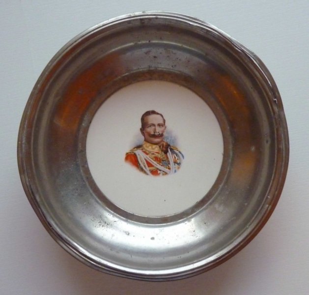Zinkový talíř s porcelánovým středem - portrét císaře Viléma I. , mimořádný exponát