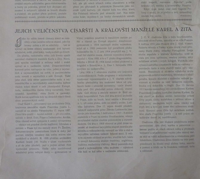 noviny - uvnitř portrét Karla a jeho manželky Zity
