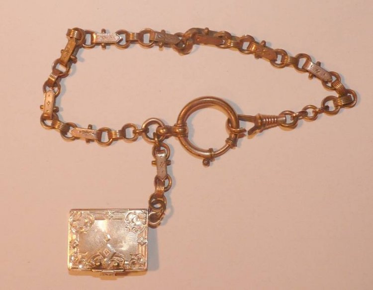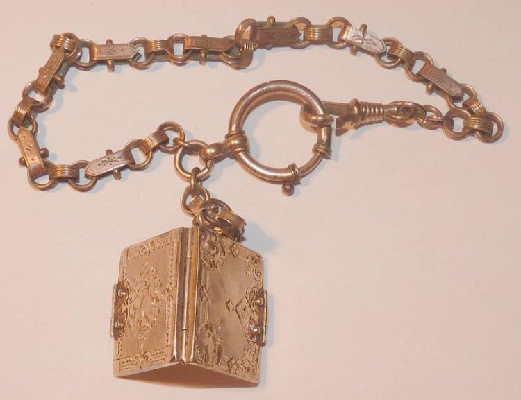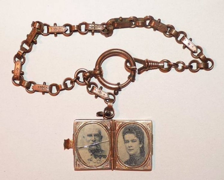 Náramek na ruku ve tvaru knihy s portréty císařského páru Elisabeta a František Josef / náramek je pozlacený a silně opotřebovaný - medailon je vyroben ze zlata