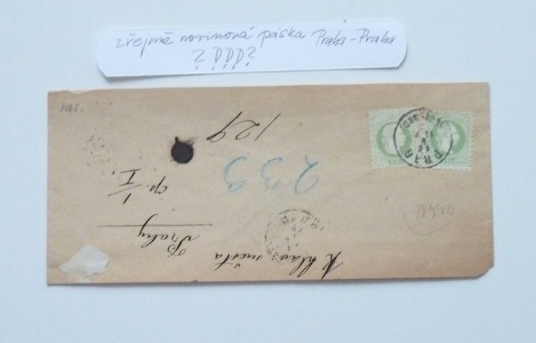 Zřejmě novinová páska , frankována 2 krát 3 Kr a jednou 5 Kr